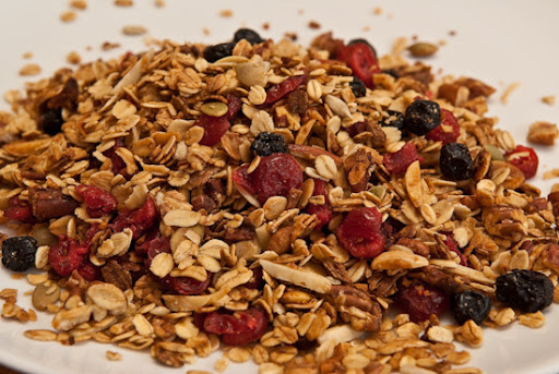 In a large bowl, add the oats, walnuts, sunflower seeds, brown sugar and a pinch of salt. Pour in the syrup mixture and toss well. In a small bowl, whisk the egg whites to combine. Pour over the granola and toss well. Evenly spread the mixture onto a sheet tray. Bake until golden, turning several times, about 35 to 40 minutes.