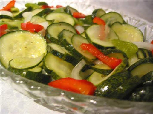 3. Pack into freezer containers and cover with brine (I use ziplock bags to have the pickles in small portions and then place the small bags in a larger freezer container). Freeze Thaw before serving.