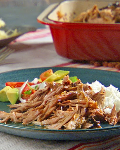 Preheat oven to 250 degrees. Remove meat from refrigerator 30 minutes before cooking. Place pan in the oven, fat side up, and add 1 cup of water to pan. Roast, uncovered, occasionally basting meat with juices and rub and turning pan to promote even cooking. Cook for 6 to 8 hours, until meat easily shreds. Let rest for 15 minutes, then shred and serve.