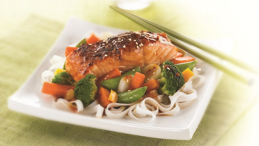 Place vegetables and salmon over rice or noodles. Drizzle with sauce. Sprinkle with cilantro and sesame seeds, if desired.