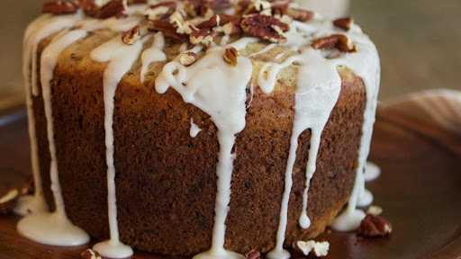 5 In small bowl, mix glaze ingredients until smooth and consistency of thick syrup. Drizzle over top of bread. Sprinkle evenly with remaining 1/4 cup pecans.