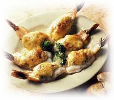 Peel and devein shrimp, leave tails on. Butterfly shrimp along the outside curve. Open shrimp flat and place butterflied side down in an ungreased 15x10x1 inch pan.