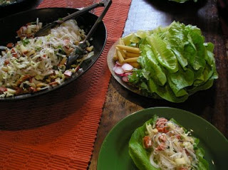 4. To eat the salad, pile some onto an individual lettuce leaf, moisten it with a squeeze of fresh lime juice, roll it up, and eat it out of hand.