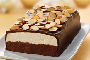 Invert dessert onto platter. Remove pan and plastic wrap. Top dessert with chocolate glaze and nuts. Refrigerate until glaze is firm.