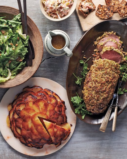 Place skillet over medium-high heat and cook until butter vigorously bubbles in pan, about 4 minutes. Transfer to oven and bake 30 minutes. Tent loosely with foil and continue to bake until potatoes are easily pierced with a knife, about 20 minutes more. Remove from oven. Run a small rubber spatula around edges of potatoes to loosen. Carefully invert onto a plate and cut into wedges.