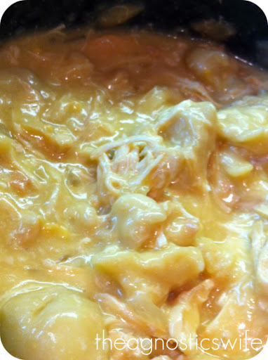 Remove chicken and shred. After shredded place chicken back into crockpot and mix. Serve hot.