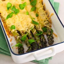 3.Bake in preheated oven until lightly browned, 15 to 20 minutes. 4. Drizzle with vinegar and if desired top with some parmesan cheese just before serving.