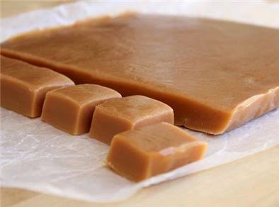 Combine corn syrup, brown sugar, milk and butter in a saucepan. Bring to a boil over medium heat. Cook for 20 Minutes stirring constantly. Pour into buttered oblong pan. Cut into squares when cool.