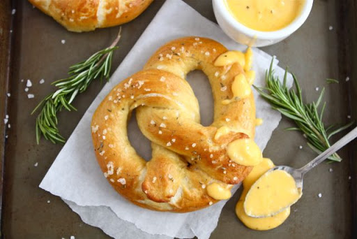 Rosemary Sea Salt Pretzels with Rosemary Cheddar Cheese Sauce