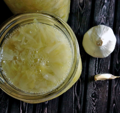 Garlic Sauerkraut has become a staple in our home! It is easy to make; waiting is the hardest part. But patience is a delicious virtue!
