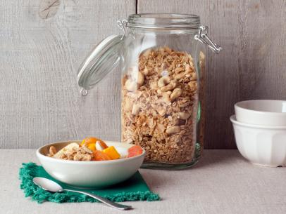 In a separate bowl, combine maple syrup, oil, and salt. Combine both mixtures and pour onto 2 sheet pans. Cook for 1 hour and 15 minutes, stirring every 15 minutes to achieve an even color.