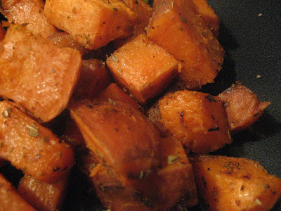Heat oven to 375. Mix all ingredients in a bowl and stir until potato cubes are well coated.