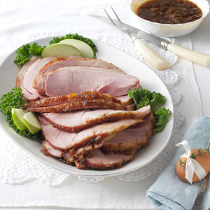 - 1 fully cooked bone-in ham (7 to 9 pounds)