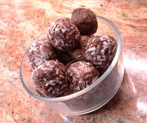Process until completely mixed and add more coconut oil if it is not moist enough. Form into balls and roll in coconut if desired. Store in refrigerator.