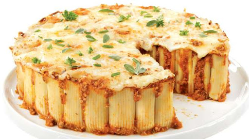 Pour the sauce into the pan, ensuring that each rigatoni is filled. Bake for 20 minutes and then cover with cheese and continue baking 10 more minutes. At the end of baking, light the broiler and leave the pan in the oven until the cheese becomes golden brown, about 5 more minutes.