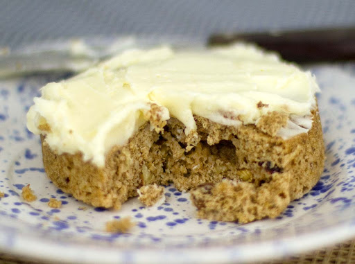 While the muffin is nuking, beat together your cream cheese, butter, powdered sugar equivalent, vanilla and salt. Make sure your cream cheese and butter are soft (leave out at room temperature for a while) before whipping, or else mixing will be difficult, at best.