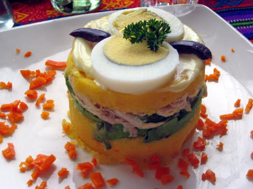 La causa limeña es un plato muy popular de la comida peruana, se suele servir como entrada.