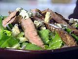Cut the steaks crosswise into thin slices. Arrange the steak slices atop the salad and sprinkle with the remaining cheese. Drizzle more vinaigrette over the steak slices and serve.