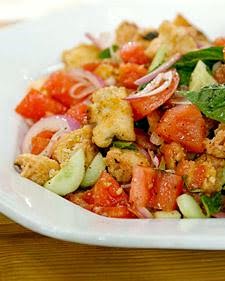 Toss to coat bread thoroughly with the marinating liquid. Adjust the seasoning with salt and pepper, and remove garlic clove.