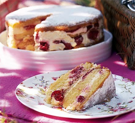 Spoon a third of the cream mixture over one of the cake halves. Scatter over some of the fruit (you don't want to cover the cake), then sandwich another half on top. Spread with cream and fruit as before and top with another half of cake and more cream and berries. Lay the final cake half on top. Gently press down, then wrap tightly in cling film and leave in the fridge overnight. To stop the cream from melting, this cake needs to be transported to the picnic in a cooler box. At the picnic, carefully remove clingfilm and dust with icing sugar to decorate, if you like.