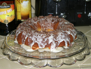 Add remaining 1/4 cup of orange liqueur and stir until blended and glazy. Drizzle over top of cake.