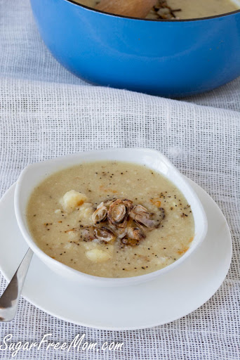 Bring the soup to a low simmer and stir in remaining 2 tablespoons of arrowroot powder until mixture thickens.