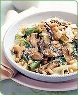 Bowties with Wild Mushrooms, Baby Spinach and Pine Nuts