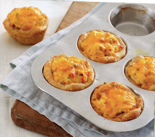 1. Preheat oven to 375°. Press biscuits into bottom and up sides of 12 muffin cups. Set aside.