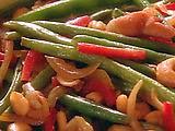 In a skillet, cook the bacon until very crispy, crumble and set aside. Saute the bell pepper and onion in the hot bacon fat for 2 minutes. Add the beans, cashews, and bacon to the skillet. Add the teriyaki-honey sauce and toss gently.