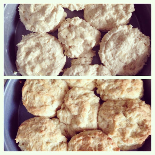 push a little dent in the middle of each biscuit and pour on some melted Earth Balance.