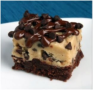 3. Spread cookie dough over the cooled brownies. Refrigerate until the dough is quite firm. It's okay to speed up the process and place it in the freezer too. The firmer the dough, the easier it will be to cut into neat squares. Use a sharp knife to cut the brownies. You may need to wipe the knife off with a paper towel in between cuts since the fudgy brownies and cookie dough will tend to stick to the knife a bit. These brownies are best to serve placed inside cupcake papers and served with a fork.