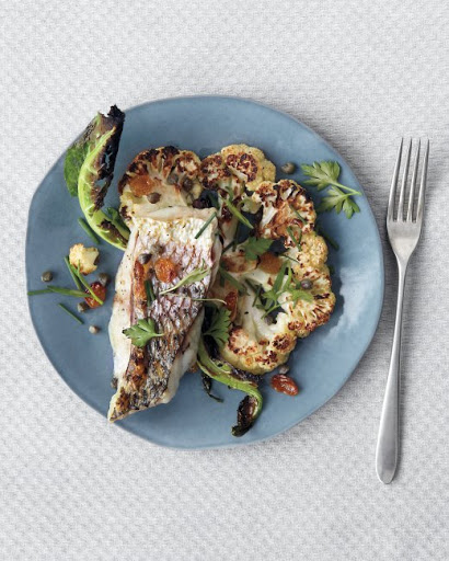 Broiled Striped Bass with Cauliflower and Capers