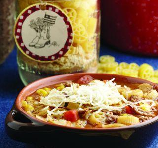 Cooking instructions: Brown beef in a large saucepan; drain. Add jar contents and water; bring to a boil. Stir in corn and tomatoes. Reduce heat, cover and simmer for 20 to 25 minutes, until pasta is tender. Garnish as desired.