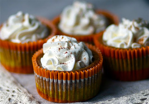 Chill cupcakes before serving. Top with lightly sweetened whipped cream.