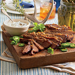 3. Bake, covered, at 250° for 4 to 5 hours or until fork-tender. Let stand 30 minutes. Thinly slice brisket across the grain. Serve with Horseradish Cream.