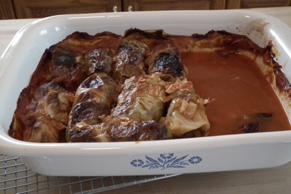 * Put cabbage in boiling water for 5 minutes, cut out as much of the core as possible. Separate leaves.