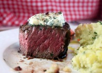 Heat the remainder of the butter (1/2 stick) and the olive oil in a cast iron skillet to a screaming hot temperature. Preheat your oven to 400 degrees. Sear the filets in a screaming hot pan for about 2-3 minutes per side, or until a nice brown crust has formed. While the steak is searing, continue to spoon the residual butter in the pan on top of the meat while it's cooking. Once both sides are seared, place in the center of the oven for about 6-8 minutes, depending upon how thick your steak is. In the last minute of cooking, take the log of compound butter and slice a nice thick piece to place on top.