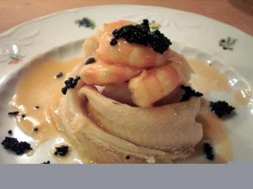 LENGUADO RELLENO DE CAMARONES EN SALSA DE OSTRAS Y CAVIAR