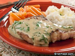 Our to-die-for homemade creamy basil sauce drizzled over easy-to-prepare, moist and juicy pork chops makes for a memorable meal. Who would think something this fancy was such a cinch?