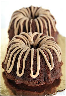 For the cake: Preheat the oven to 350 degrees. Spray the insides of the bundt pans with nonstick cooking oil spray.