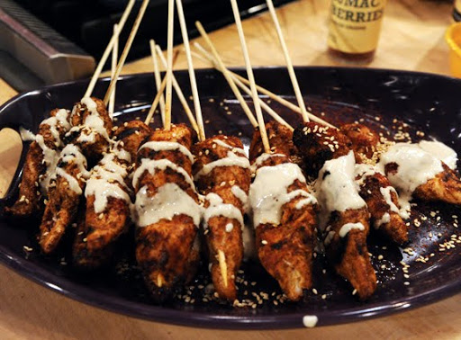 Chicken Shawarma Satay with Sumac and Tahini Drizzle