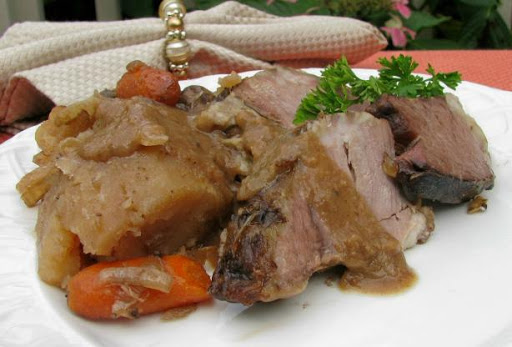 You may also add in 1/3 cup dry red wine, do not add in any extra salt to this --- cooking time is for a 4-pound roast.
