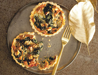 For Crusts: In the bowl of a food processor, combine flour, walnuts and salt; pulse until nuts are coarsely chopped. Add butter; pulse until mixture resembles coarse meal with some pea-sized pieces remaining. Add milk; pulse just to combine.