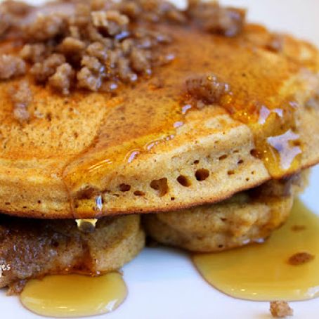 Notes: The pancakes, themselves, are not overly sweet. However, the streusel can be sweet and very rich. If you want to cut back on the sweetness, I would suggest NOT adding the streusel on the first step-- rather, adding streusel once the pancake has been cooked and flipped on one side.