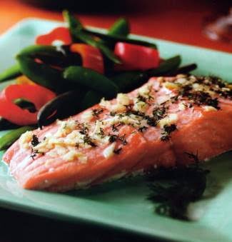 Spread crushed garlic cloves over the top. Sprinkle with dill.