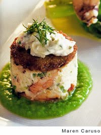 2. Sprinkle the asparagus with salt and pepper and drizzle with a little extra-virgin olive oil. Spoon a pool of lemon vinaigrette on one side of each of 4 large dinner plates and top with the asparagus spears. (If you have 4 spears per person, you could stack them crosswise, 2 over 2. Otherwise line 3 spears side by side.) Toss the crab claws or “thighs” with some of the lemon vinaigrette and place on top of the asparagus. Spoon a pool of asparagus vinaigrette on the other side of the plate and top with a crab cake and a dollop of tartar sauce.