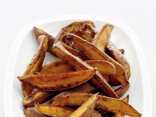 Toss 2 pounds sweet potatoes (cut into wedges) with 3 tablespoons olive oil, 1 1/2 teaspoons each brown sugar and salt, 1/4 teaspoon each cumin and chili powder, and a pinch of cayenne. Roast cut-side down on a baking sheet in a 425 oven until crisp, 30 minutes, turning once