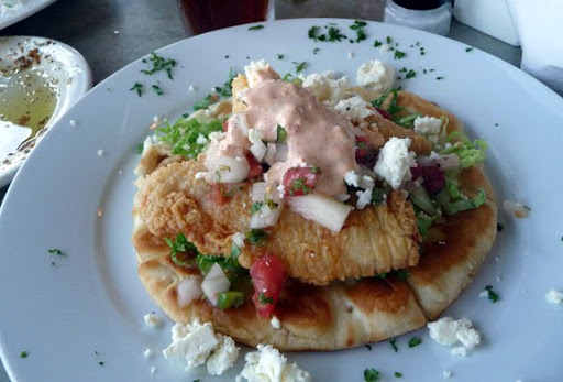 Serve fish with diced fresh tomatoes and onions, topped with tzatziki sauce, and wrap in a large washed leaf of Boston lettuce. Enjoy!