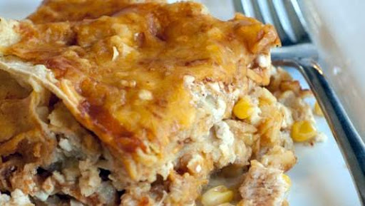 Repeat layers: 8 tortilla halves, 1 cup squash mixture, 1 cup chicken, remaining corn, 1/2 cup cheese and 1/2 cup enchilada sauce. Top with remaining tortillas, squash mixture, enchilada sauce and 12 cup cheese.