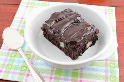Immediately spread evenly over the chocolate cake. Allow to set before cutting into bars.